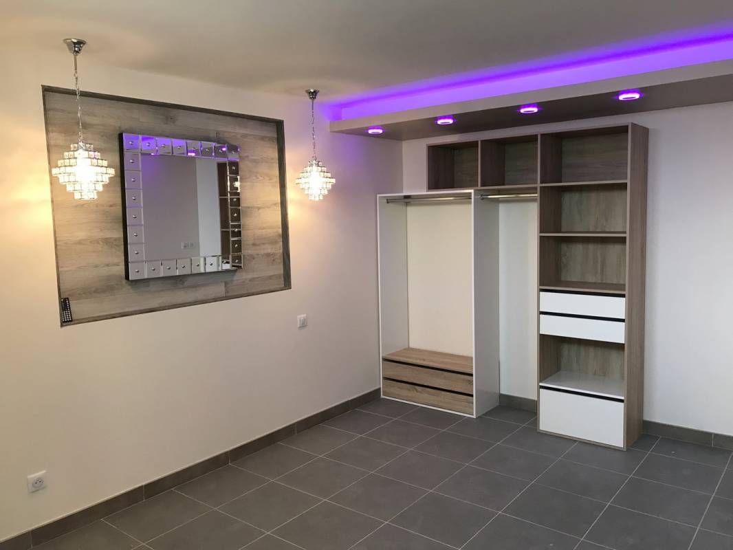 L’ensemble du logement est décoré de façon contemporaine (papier peint tendance, luminaires design, mur en pierres, spots encastrés et éclairage à LED avec télécommande pour changement de couleurs, etc.…).